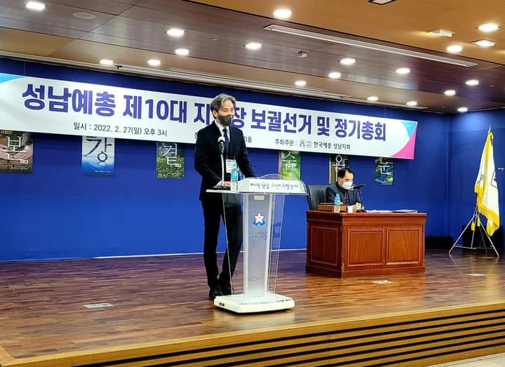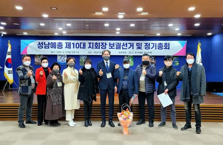 * 성남예총 김영철(연예지부 소속) 유고(형사범 구속) 로 정지희(영화지부장)가 성남예총 수석부회장으로 대행 중 이사회 의결로 보권선거릏 급속히 시행, 2022. 2. 27. 대의원 총회(성남시청 온누리홀)에서 송위혁(사진지부 소속)이 제10대 성남예총 잔여임기의 회장으로 피선되었다. 이번 보권선거에는 재석 대의원 45명 결원없아 전원출석. 홍정민(연예)과 송위혁(사진)이 출마했다.(16: 28)