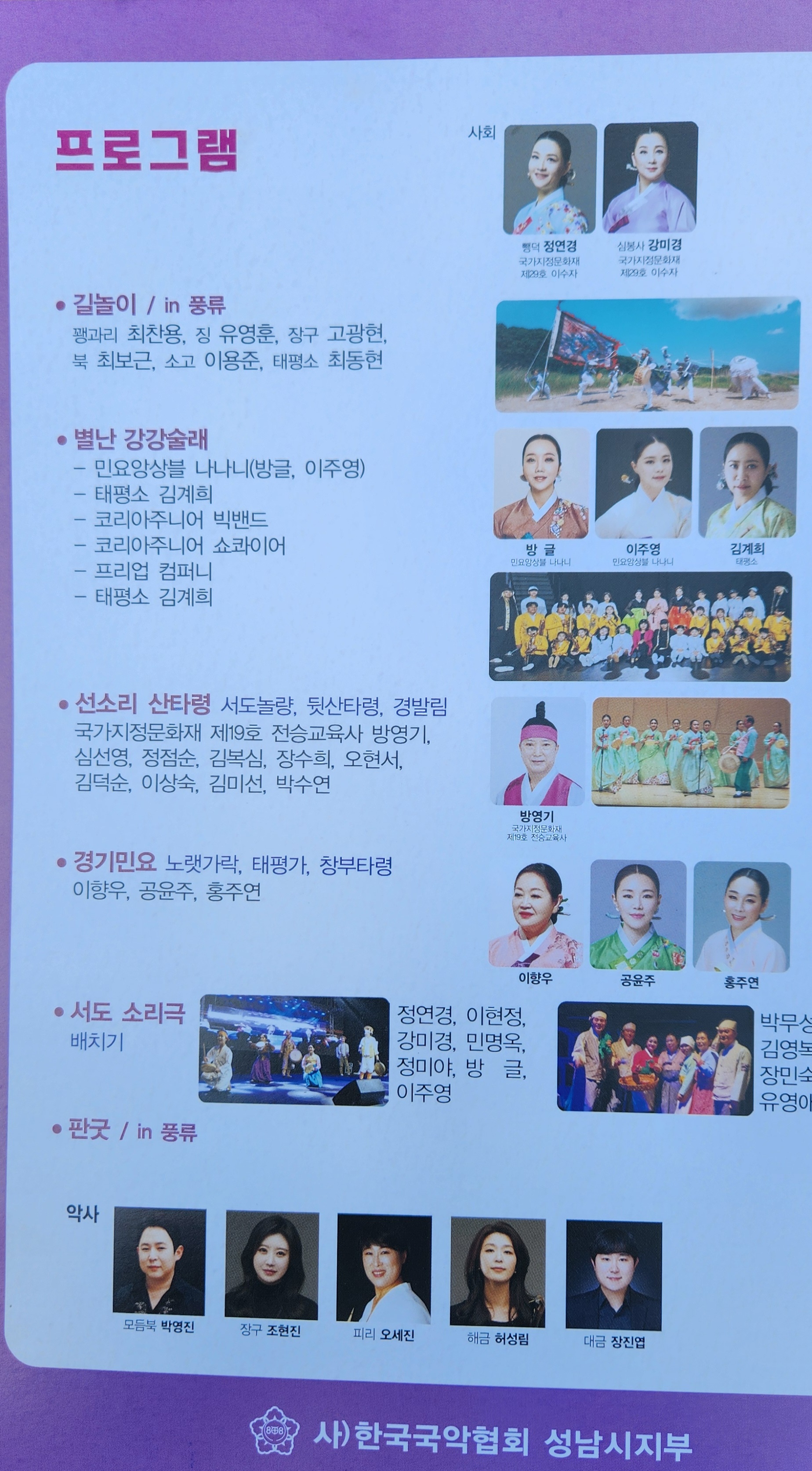 * 제38회 성남국악제: 주관:성국협회(지부장 이향우)-
